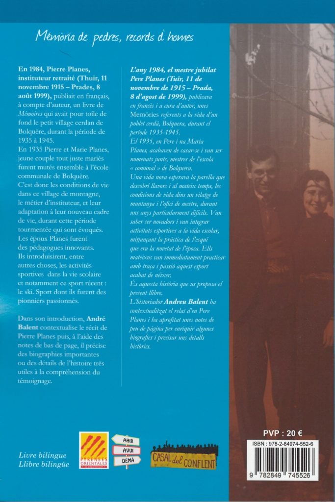 S’acaba de publicar en versió bilingüe el llibre d’en Pierre Planes “Fa pas gaire temps… Un vilatge de muntanya i la seua escola, 1935-1945” (primera edició el 1984). Ha estat possible gràcies al Casal del Conflent i l’associació Ahir-Avui-Demà, amb en concurs d’Andreu Balent, Anna Lon, Didier Payré, Maria Planes, Violeta Tubert, Miquela Valls i l’editorial Trabucaire.